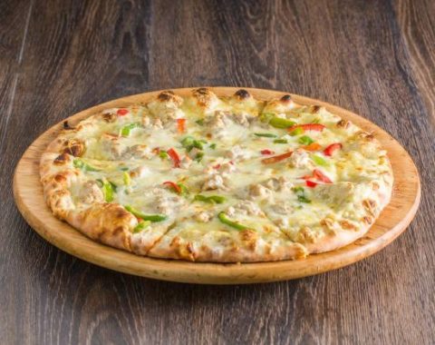 $12.00sauce tomate-mozza-poulet-poivrons-oignons-origan