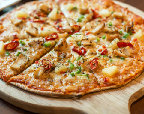 $13.00sauce tomate-mozza-poulet au curry-oignons confits-persil