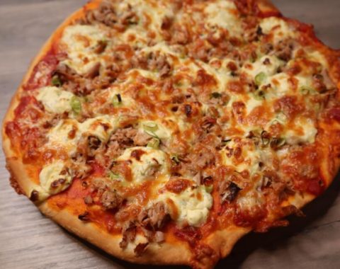 $12.00sauce tomate-mozza-thon-oignons-poivrons marinés-olives-origan-persil