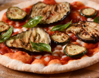 sauce tomate-mozza-chiffonnade de jambon blanc-champignons de Paris frais-origan